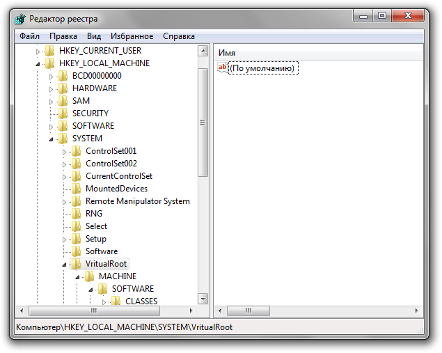 Виртуальному реестру соответствует раздел реального реестра HKLM\SYSTEM\VritualRoot . При работе виртуализированных программ данные реестра записываются в его подразделы.